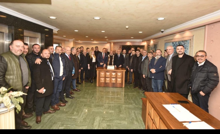 TTSO meclis başkanı Şadan Eren ve yönetim kurulu başkanı Erkut Çelebi meclis üyeleri ile 2025 yılının son toplantısında 2026 yılı yaş pastasını keserek hayırlı olsun dileklerini sundular.