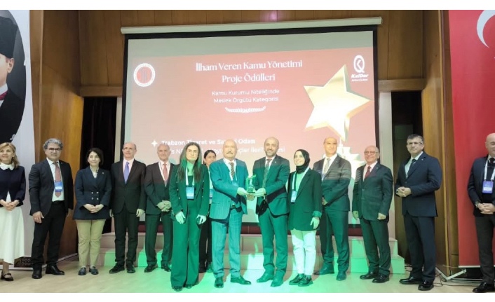 Ödül töreni bölümünde Kamu Kurumu Niteliğinde Meslek Örgütü Kategorisinde İlham Veren Kamu Yönetimi Proje Ödülünü kazanan Trabzon Ticaret ve Sanayi Odası’nın plaketi, Başkan Yardımcısı Ali Haydar Baş ve proje ekibine KalDer Başkan Yardımcısı Aytaç Muhittin Dinçer tarafından takdim edildi.