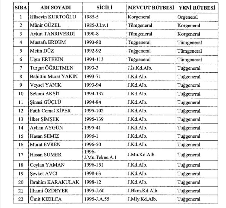 Trabzon il jandarma Komutanı Mustafa Erdem Tümgeneralliğe terfi ettirilip Jandarma Genel Komutanlığı Personel Başkanlığına atandı.Trabzon il jandarma komutanlığına ise Nevşehir il Jandarma Komutanı Tuğgeneral Bahattin Murat Yakın atandı.