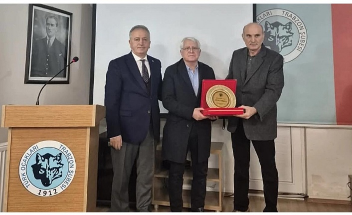 Türk Ocakları Trabzon Şube Başkanı Prof. Dr. Hikmet Öksüz, teşekkür konuşmasının ardından ocağa maddi ve manevi katkılarından dolayı Ali Yaylı ile İdris Çevik'e plaket takdim etti.