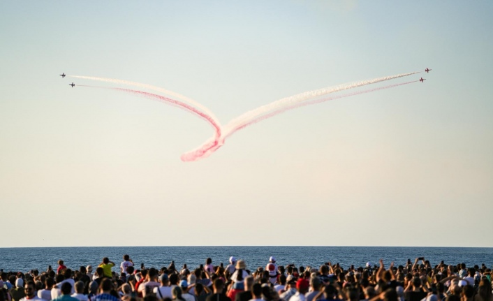 Başkan Genç, sözlerini şöyle tamamladı: “Bugün insanlık bizden bir mesaj bekliyor. Katil İsrail devleti, Gazze’de soykırım yapıyor. Çocukları ve kadınları öldürüyorlar. Çocuklar büyüyüp kendi topraklarını savunmasın, kadınlar çocuk doğurmasın diye katliam yapıyorlar. Bu, apaçık bir soykırımdır. Bu yüzden buradan, Trabzon’umuzdan, hep birlikte katil ve soykırımcı İsrail devletini şiddetle lanetliyor, kınıyoruz. Allah’ın gazabı onların üzerine olsun. Oradaki kardeşlerimiz için, bebekler için, anneler için, bir yudum suya ve bir lokma ekmeğe muhtaç olanlar için dua edeceğiz. Ama sadece dua etmekle kalmayacağız. Bugün bütün dünya suskun, maalesef Müslüman âlemi de suskun. Ancak ayağa kalkan bir Türkiye var. Haksızlığa karşı her platformda itirazını dile getiren, gür bir sesle haykıran bir liderimiz var: Recep Tayyip Erdoğan. İnşallah Cumhurbaşkanımızın çizdiği vizyonla, Gazze’deki mazlumun ve mağdurun sesi olmaya devam edeceğiz. Bunun için daha çok çalışacak, daha güçlü olacağız. Bu vesileyle, milli duygularımızı kabartan, gurur kaynağımız olan Türk Yıldızlarımıza, güzel Trabzon’umuza hoş geldiniz, sefalar getirdiniz, şeref verdiniz diyorum. Biliyorum ki böyle gururlu günlerde, Trabzonlular bizleri hiçbir zaman yalnız bırakmadı. Bu vesileyle Trabzon'un bir evladı olmaktan ve Trabzonlu olmaktan da bir kez daha gurur duyduğumu ifade etmek istiyorum.” Konuşmaların ardından Trabzon semalarında adeta görsel bir şölen sunan Türk Yıldızları, gerçekleştirdikleri nefes kesici manevralar ve gösteri uçuşlarıyla izleyenleri hayran bıraktı. Coşkulu kalabalık, gökyüzündeki akrobatik hareketleri alkış yağmuruna tuttu. Program Vira Cemal’in sahne performansıyla sona erdi.