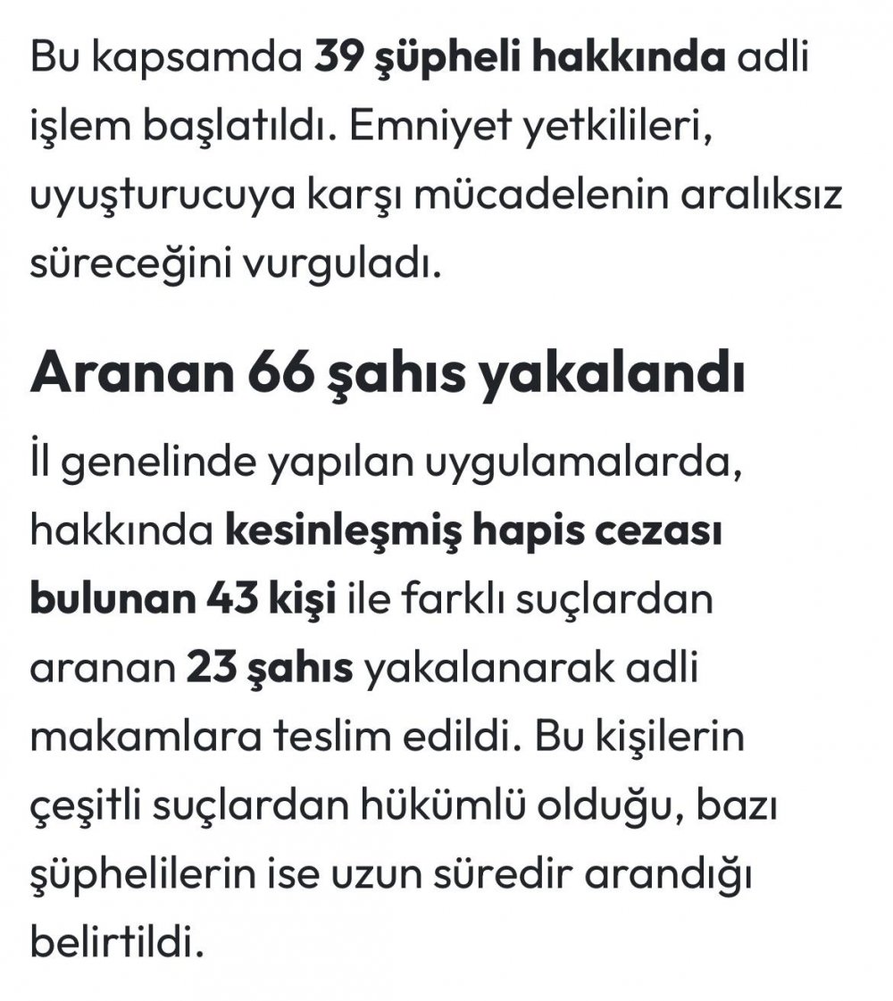 Uyuşturucu operasyonlarında 39 kişiye adli işlem