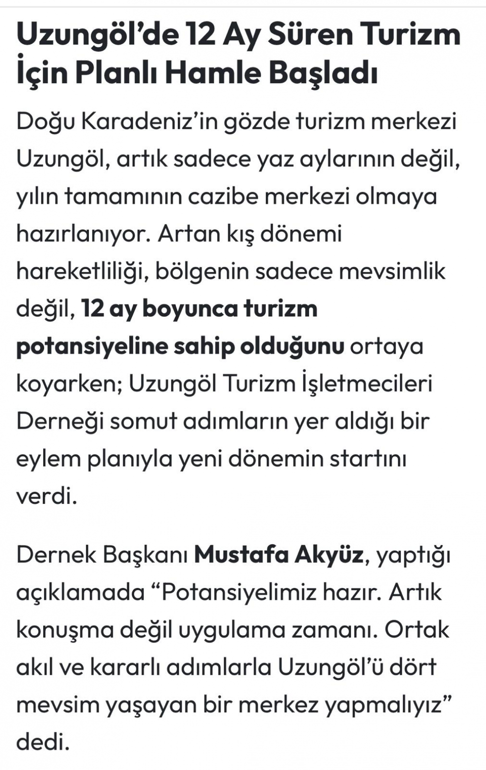 Uzungöl'de 12 Ay Süren Turizm İçin Planlı Hamle Başladı