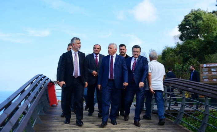 Ortahisar Belediyesi tarafından yaptırılarak hizmete alınan Boztepe Seyir Terası'nı AK Parti Trabzon Milletvekili Yılmaz Büyükaydın ile birlikte gezen Vali Yıldırım, Belediye Başkanı Ahmet Metin Genç'ten bilgi aldı.