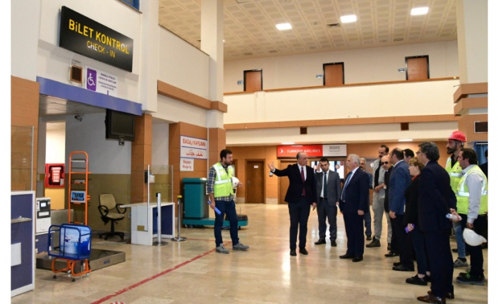 Dış Hatlar Gelen Yolcu Terminal Binası inşaatı, CIP binası inşaatı ve mevcut havalimanı içerisinde yer alan yeni çalışmaları inceleyen Vali Yıldırım çalışmalar hakkında yetkililerden brifing aldı.