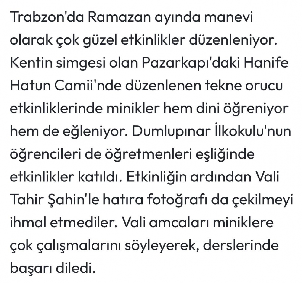 Vali Şahin çocuklarla Hanife hatun Camii’nde buluştu.
