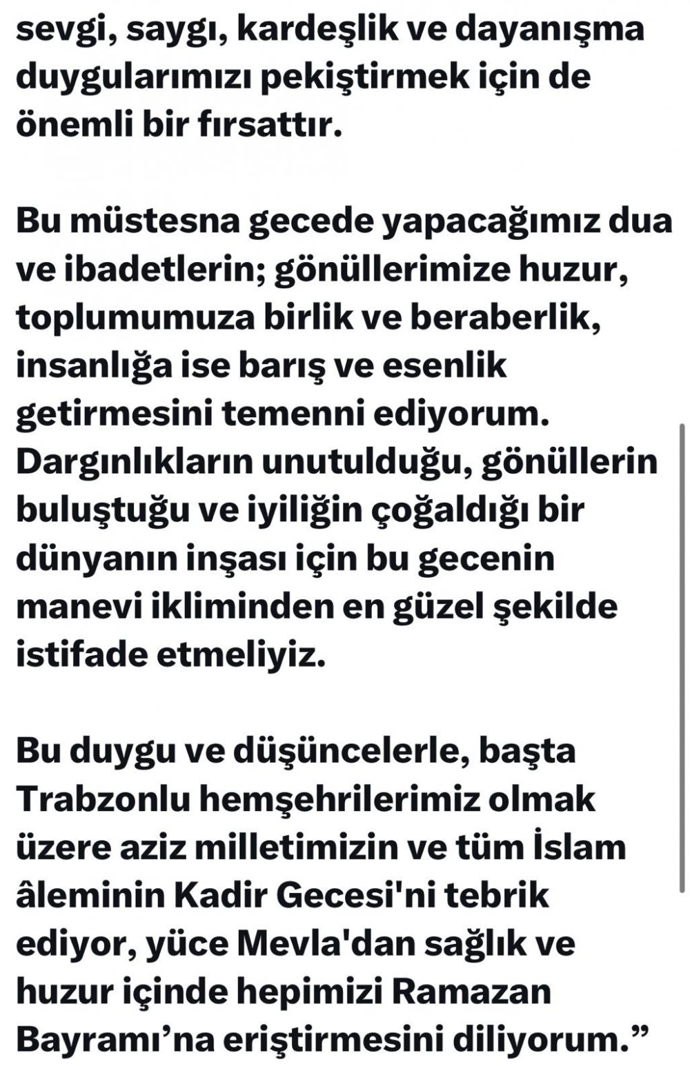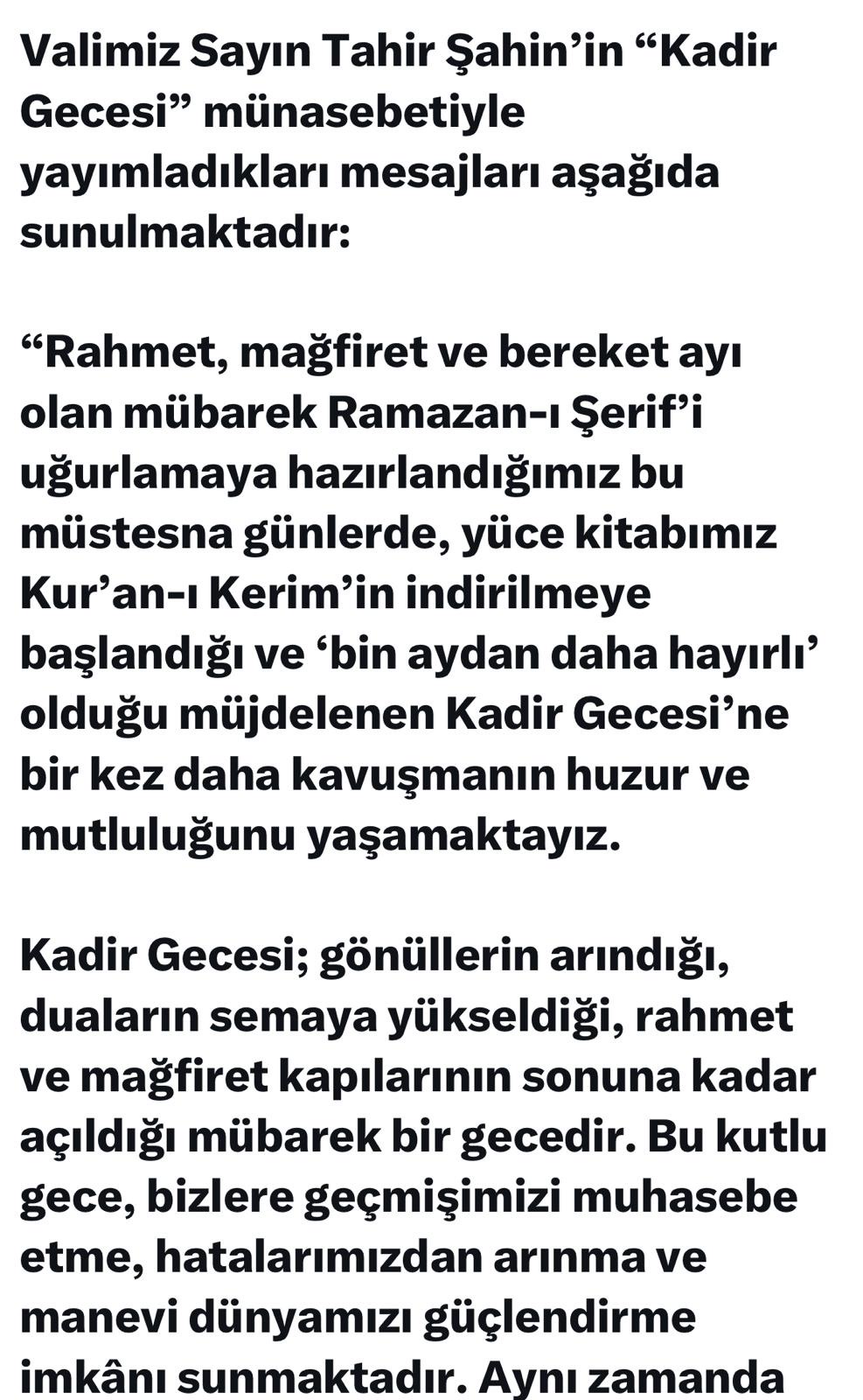 Vali Şahin kandil günü dolayısıyla mesaj yayınladı.