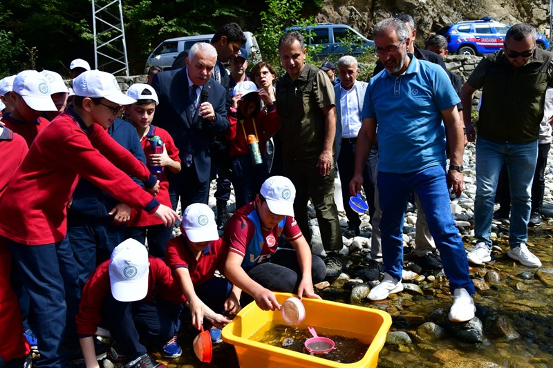 Tarım ve Orman Bakanlığı Doğa Koruma ve Milli Parklar 12. Bölge Müdürlüğünce hayata geçirilen “Doğal Alabalık Üretilmesi ve Orman İçi Suların Balıklandırılması Projesi” kapsamında kırmızı benekli alabalıkların varlıklarının arttırılması amacıyla bugün derelere balık salınımı yapıldı.Uzungöl’e yakın derelere yapılan balık salınımı programına; Trabzon Valisi Aziz Yıldırım, Çaykara Kaymakamı Gürdal Erbek, İlçe Belediye Başkanı Hanefi Tok, Doğa Koruma ve Milli Parklar 12. Bölge Müdürü Cüneyt Aloğlu, Şehit Mehmet Aygün İmam Hatip Ortaokulu öğrencileri ve diğer ilgililer katıldı.Programda, Çaykara Uzungöl civarındaki derelere 10 bin adet kırmızı benekli yavru alabalık salımı yapıldı.