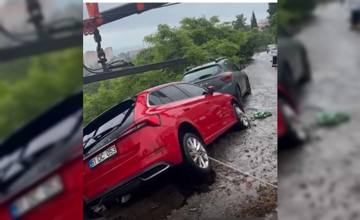 Trabzon'un Ortahisar İlçesi'nde aniden başlayan yoğun yağmur, hayatı olumsuz etkiledi. Ana yollar, yağmur sularıyla derelere dönüşürken, ara yollar da tamamen kayboldu. Araçlar, iplerle bağlanarak çekicilerle kurtarılmaya çalışıldı.