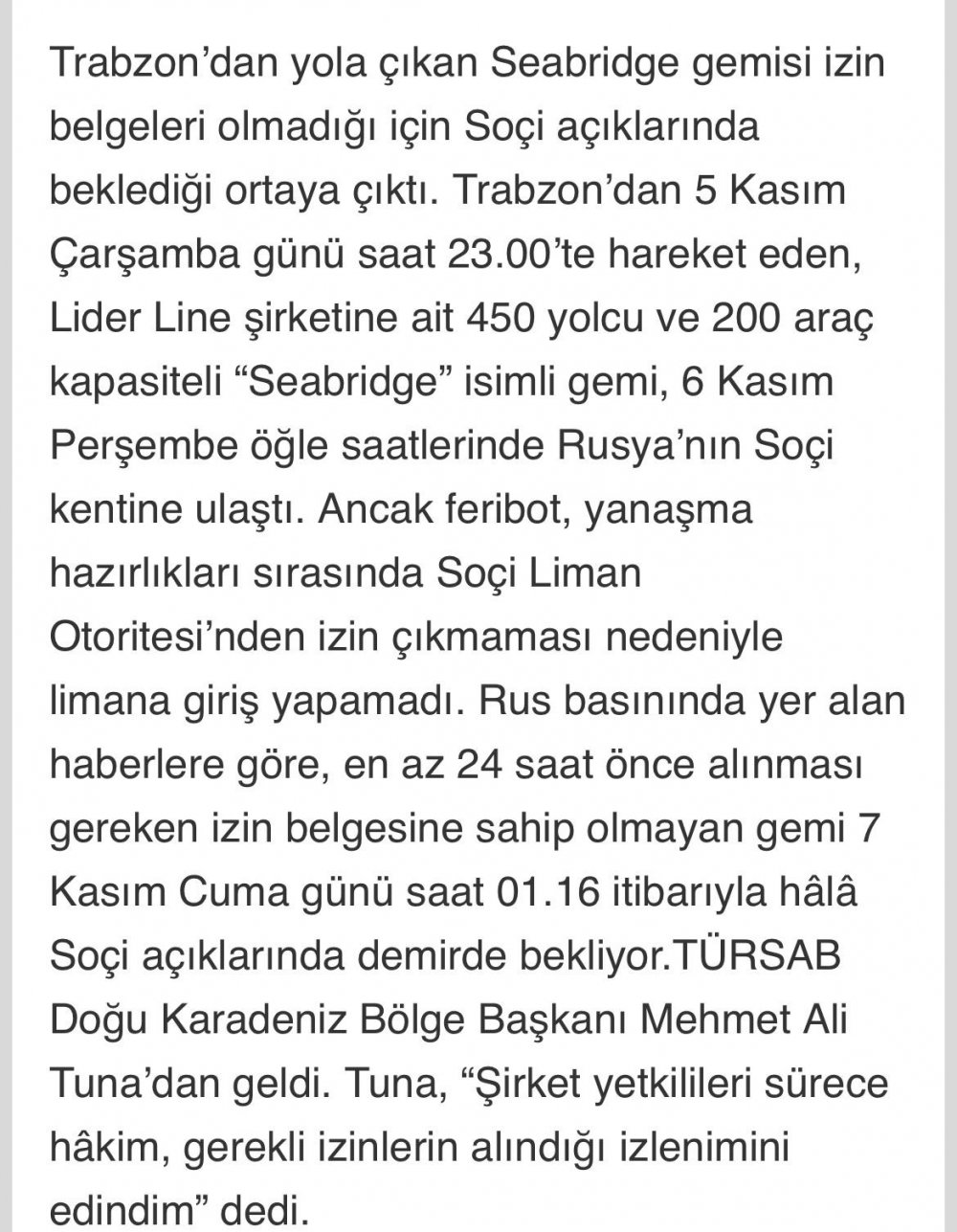 yolcu gemisi Soçi‘ye giremedi.