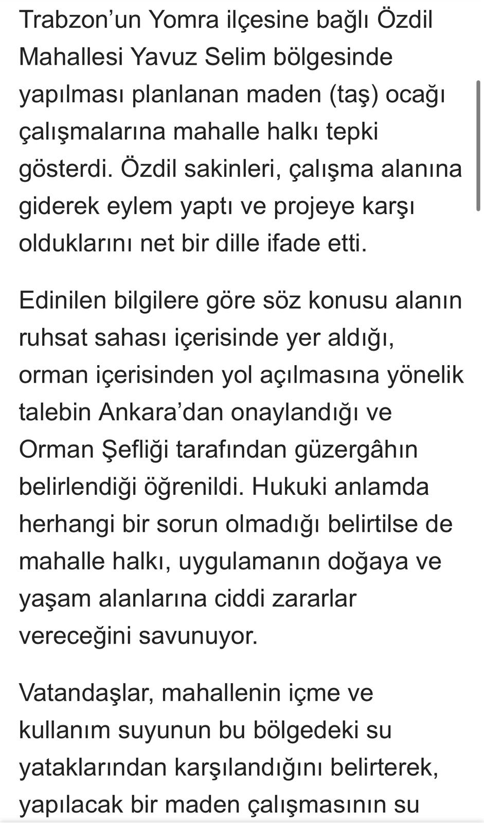 Yomra’da Taş ocağına tepki.