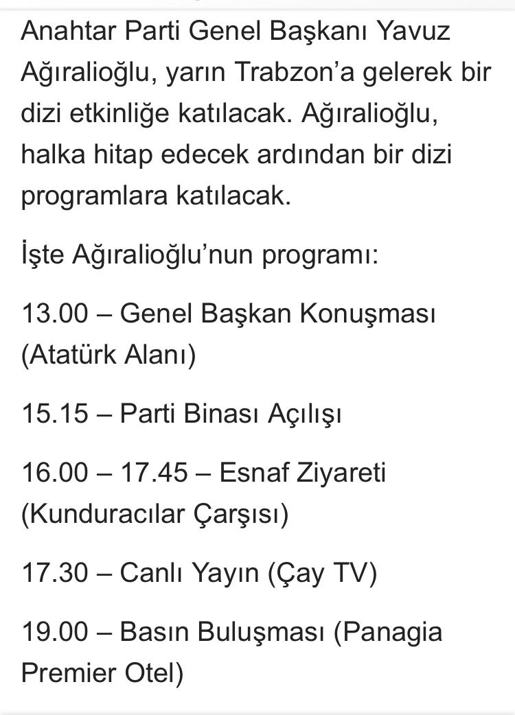 Ağıralioğlu’nun programı belli oldu.