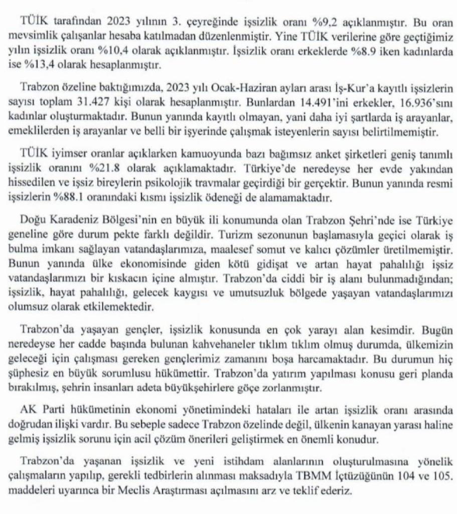 İYİ Parti Trabzon milletvekili Yavuz Aydın Türkiye Büyük Millet Meclisi başkanlığına verdiği yazılı soru önergesinde