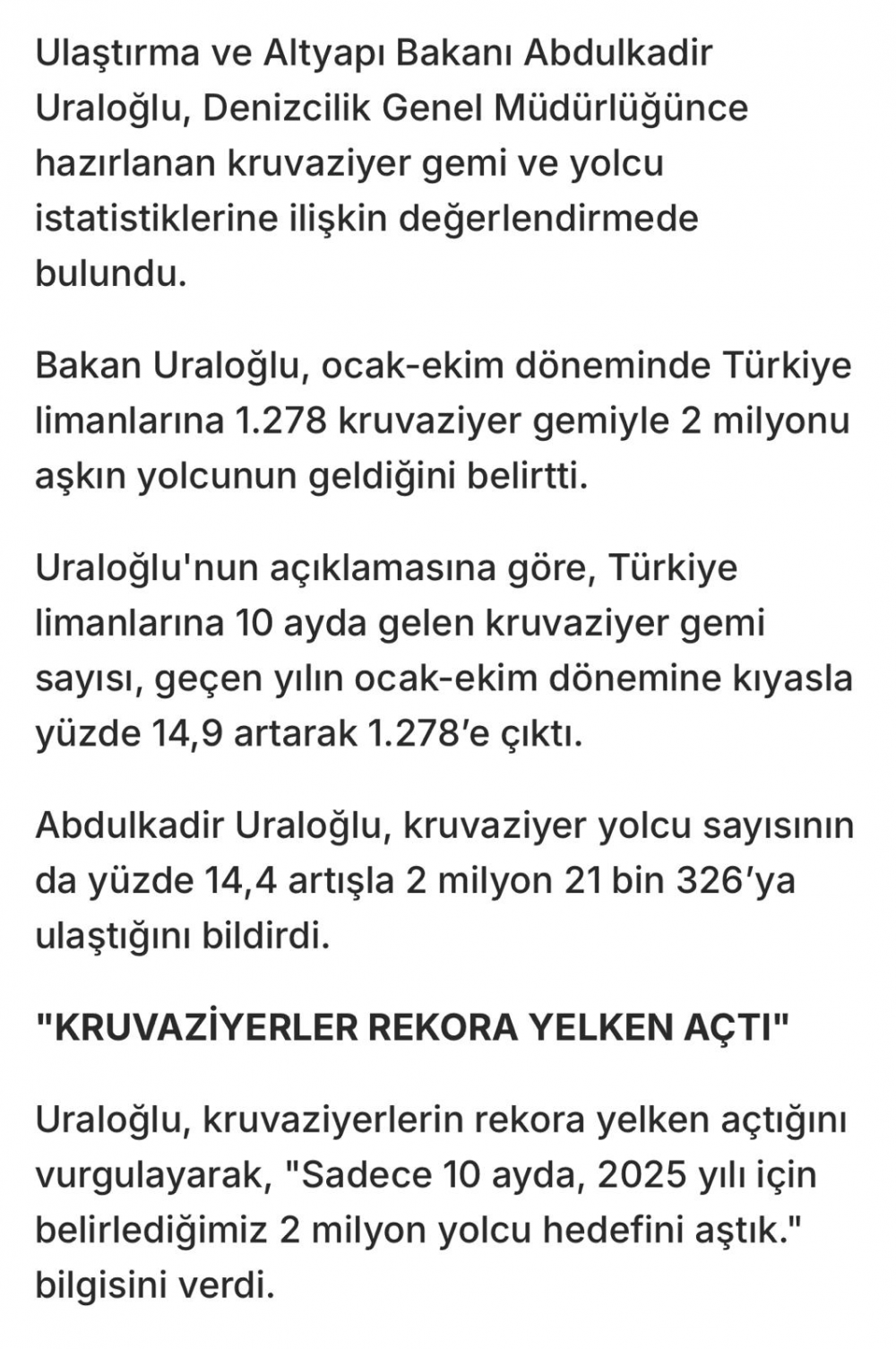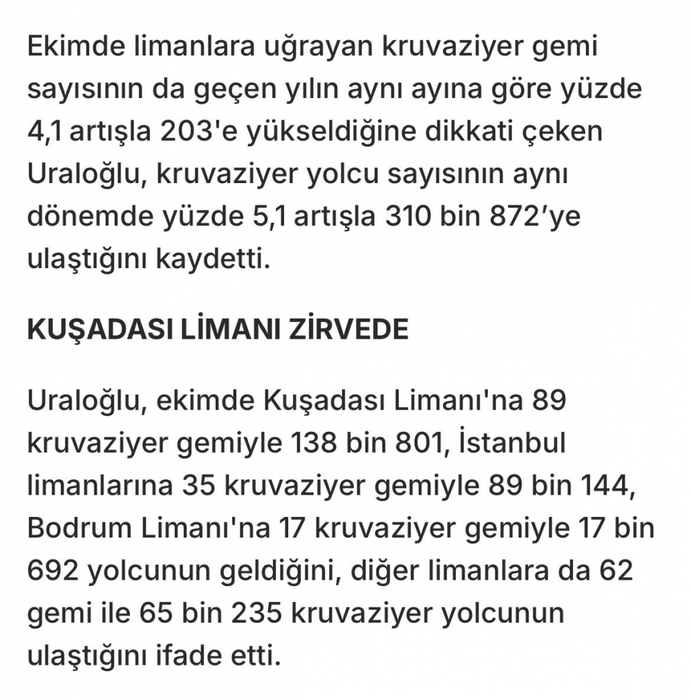 Bakan Uraloğlu Kravüzör gemilerde rekor ülkemizde.