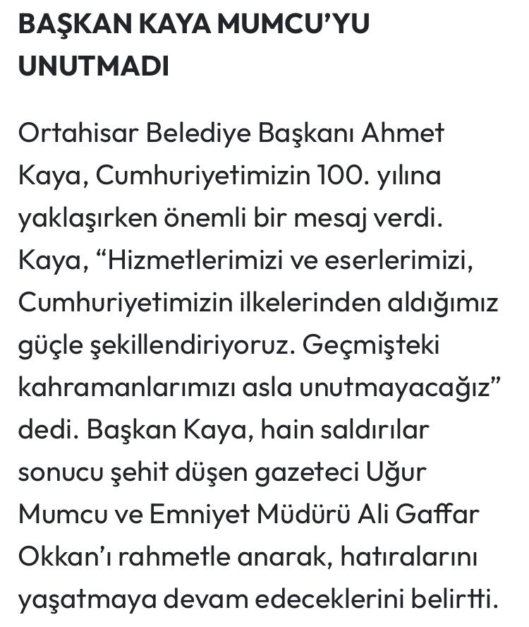 BASKAN KAYA MUMCU'YU UNUTMADI