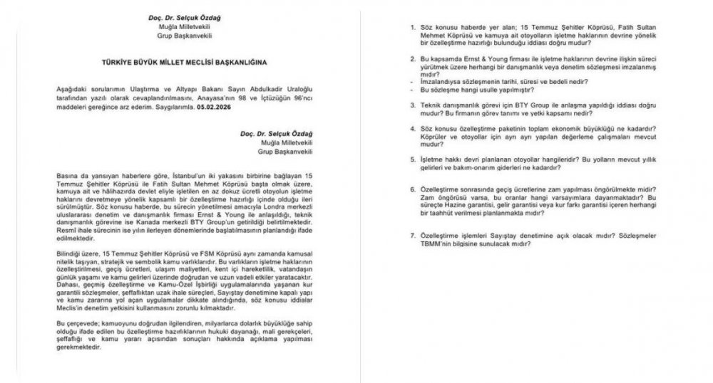 Başkan Vekili Özdağ Bakan Uraloğlu’na köprüleri sordu.