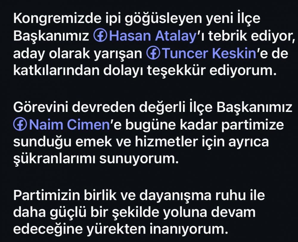Eski Başkan Türkmen Teşekkür Etti