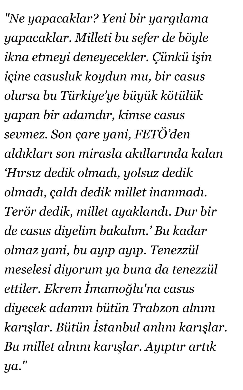 Genel Başkan Özer İmamoğlu‘na casus diyecek olanın alnını Trabzon’lu karışlar dedi.