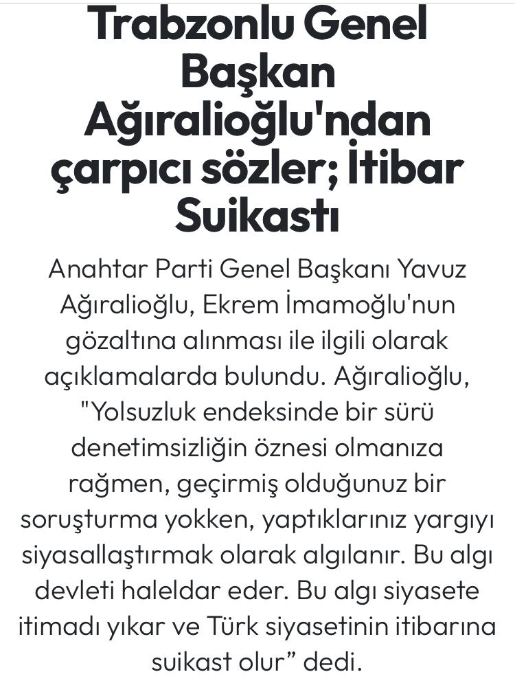 Trabzonlu Genel Baskan Agiralioglu'ndan carpici sözler; Itibar Suikasti