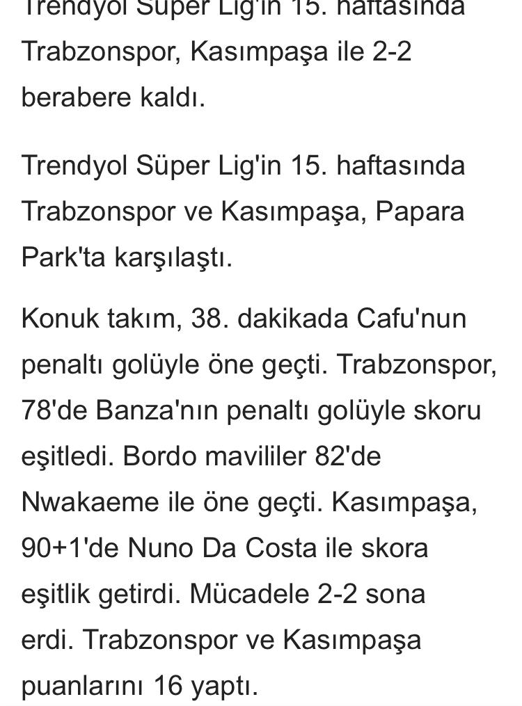Trabzonspor ve Kasımpaşa 16 puanda kaldılar