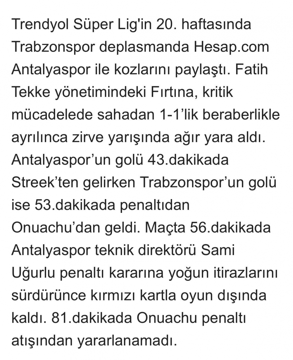 Antalyaspor :1-Trabzonspor :1