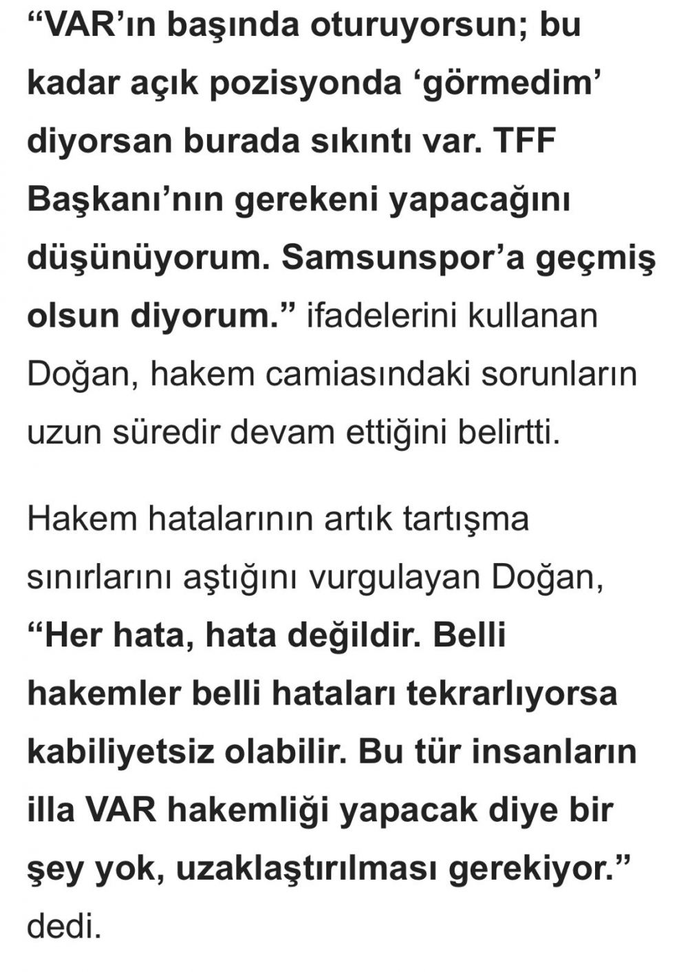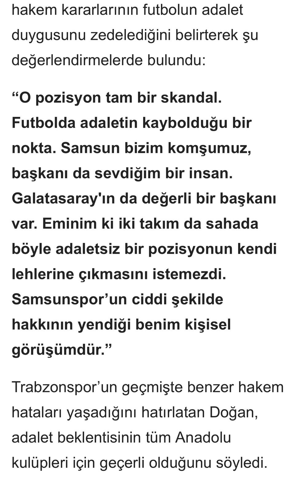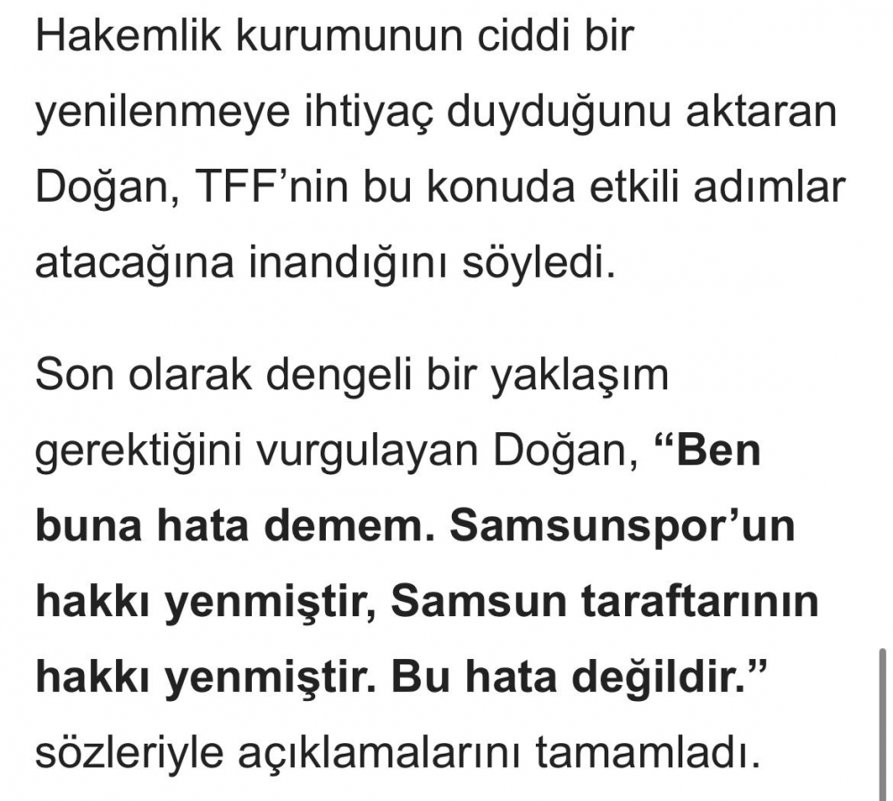 Başkan Doğan Samsunspor’un hakkı yenmiştir.