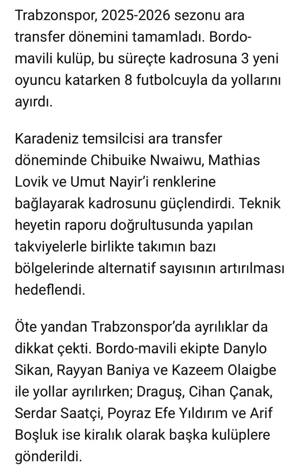 Başkan Doğan transfer sezonunu kapattı.