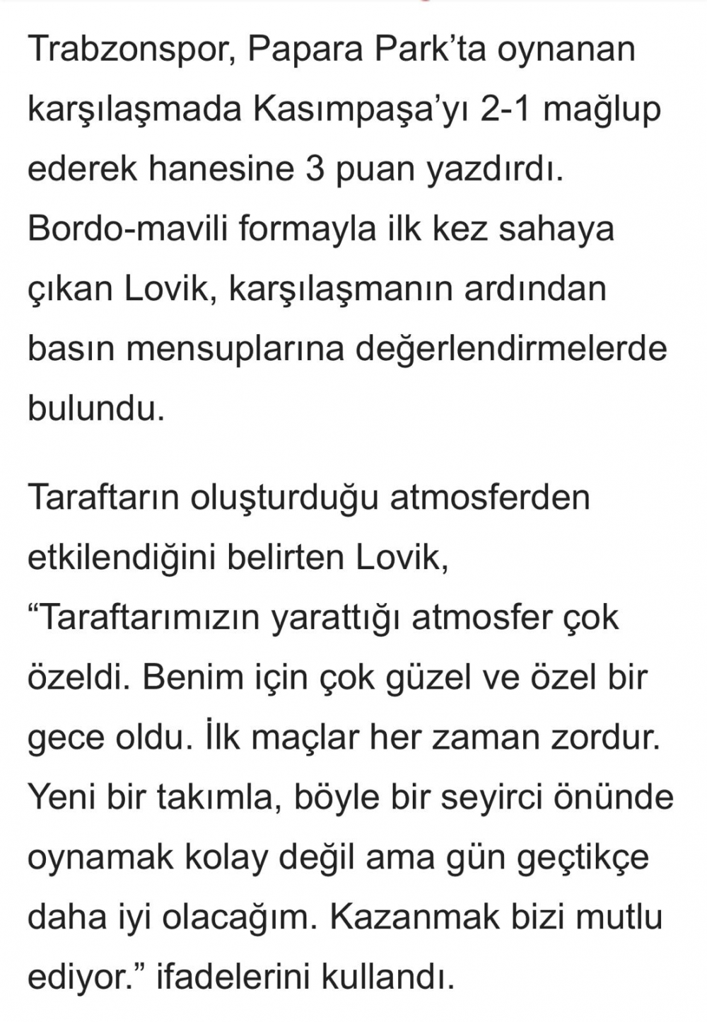 Lovik maç sonu açıklamalarda bulundu.