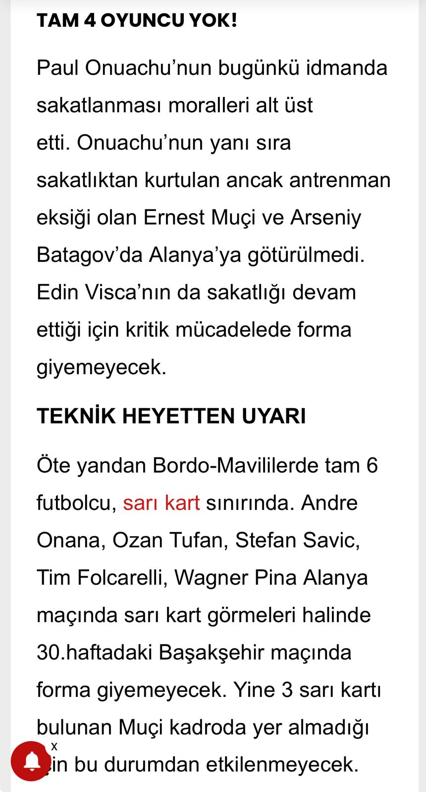 Alanyaspor 1- Trabzonspor 1