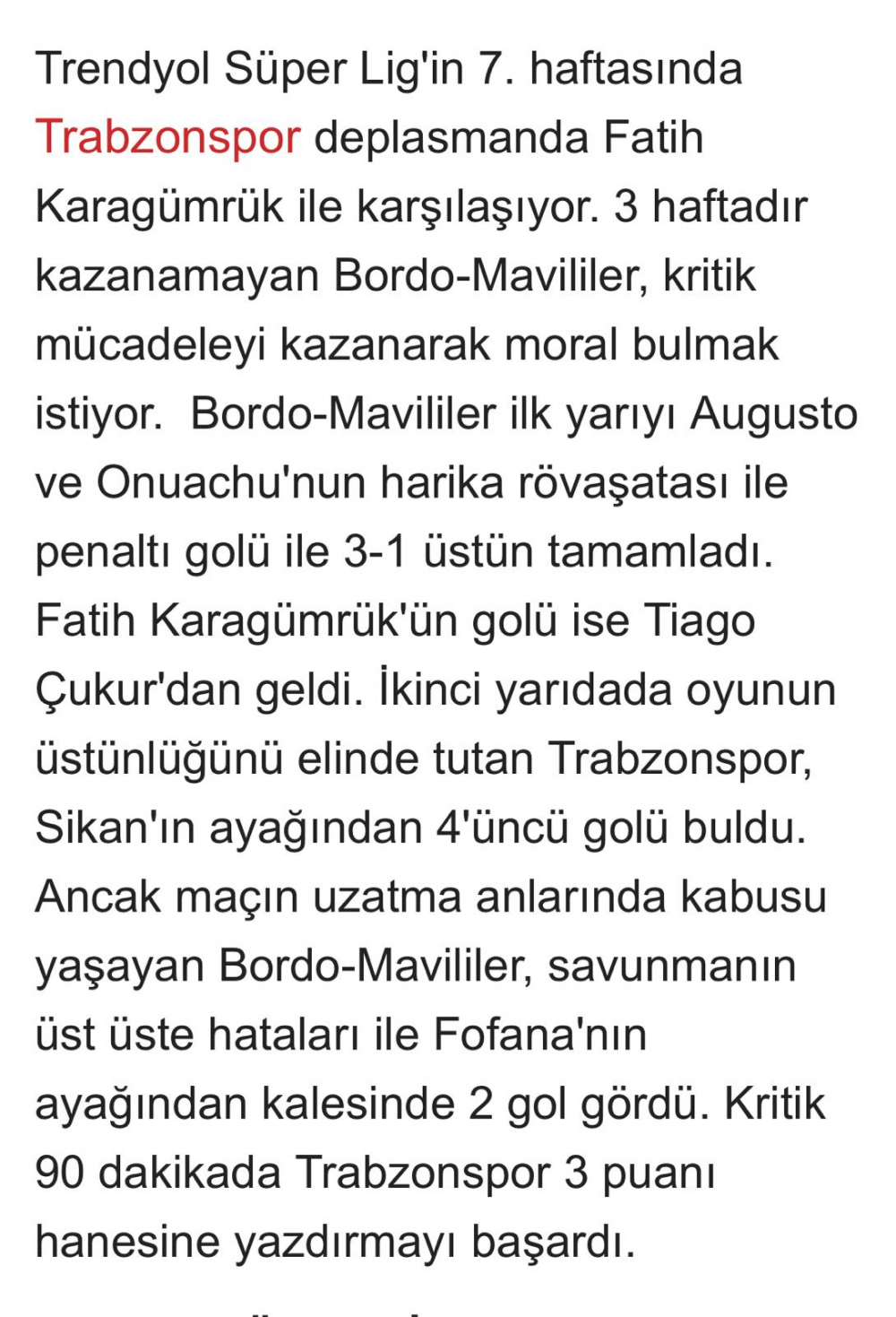 Trabzonspor 3 puanı hanesine yazdırdı.