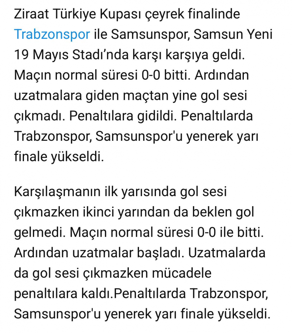 Trabzonspor yarı finalde.